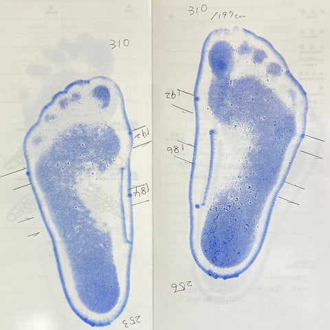 5歳から、足の筋緊張を調整してバランスを改善する固有受容器インソールを使用し、3ヶ月後のアフターチェックで、縦アーチの現出が見られた。(個人差があります)
