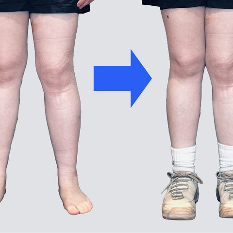 靴を履いた状態では、Xに開く足の間隔が狭まっている。