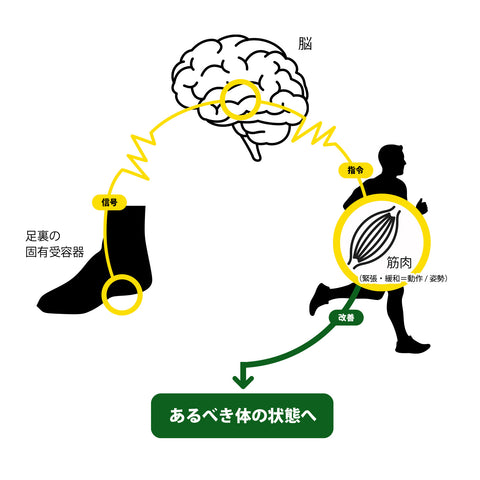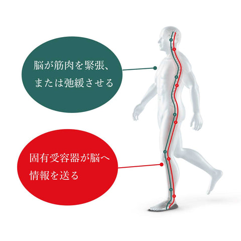 固有受容器は足裏の筋肉や腱に多く存在するセンサーで、筋肉の緊張状態を常にチェックし、情報を脳に送っています。