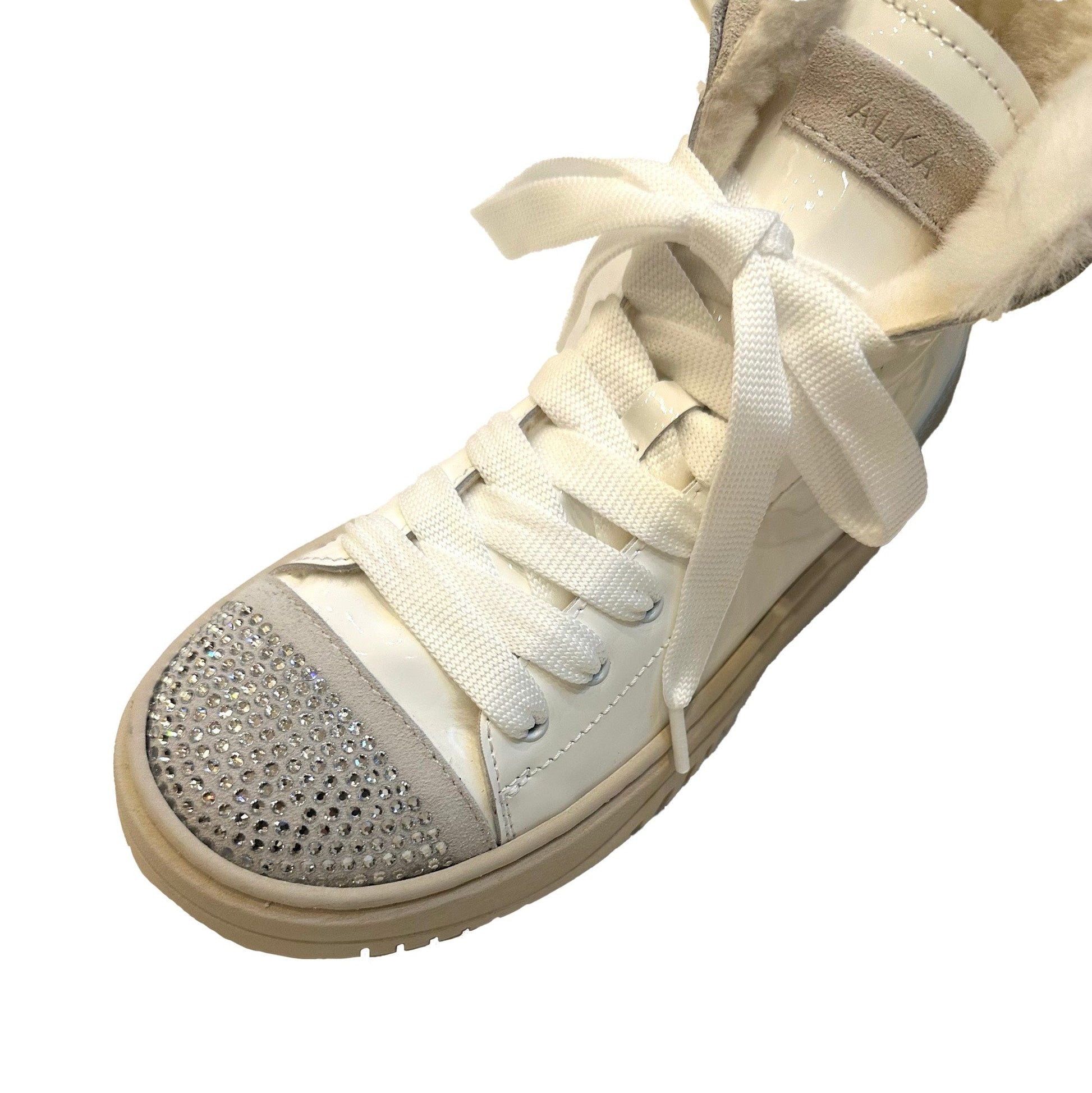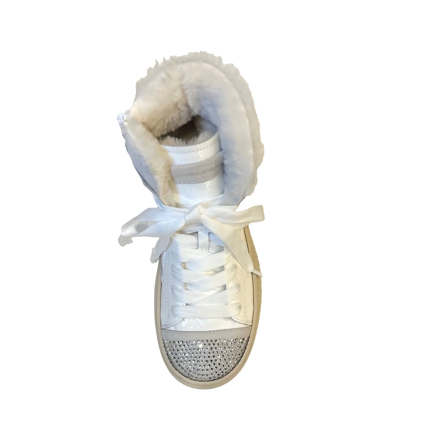 履き口からライニングまでボアをあしらった、あたたかく履けるハイカットスニーカー。