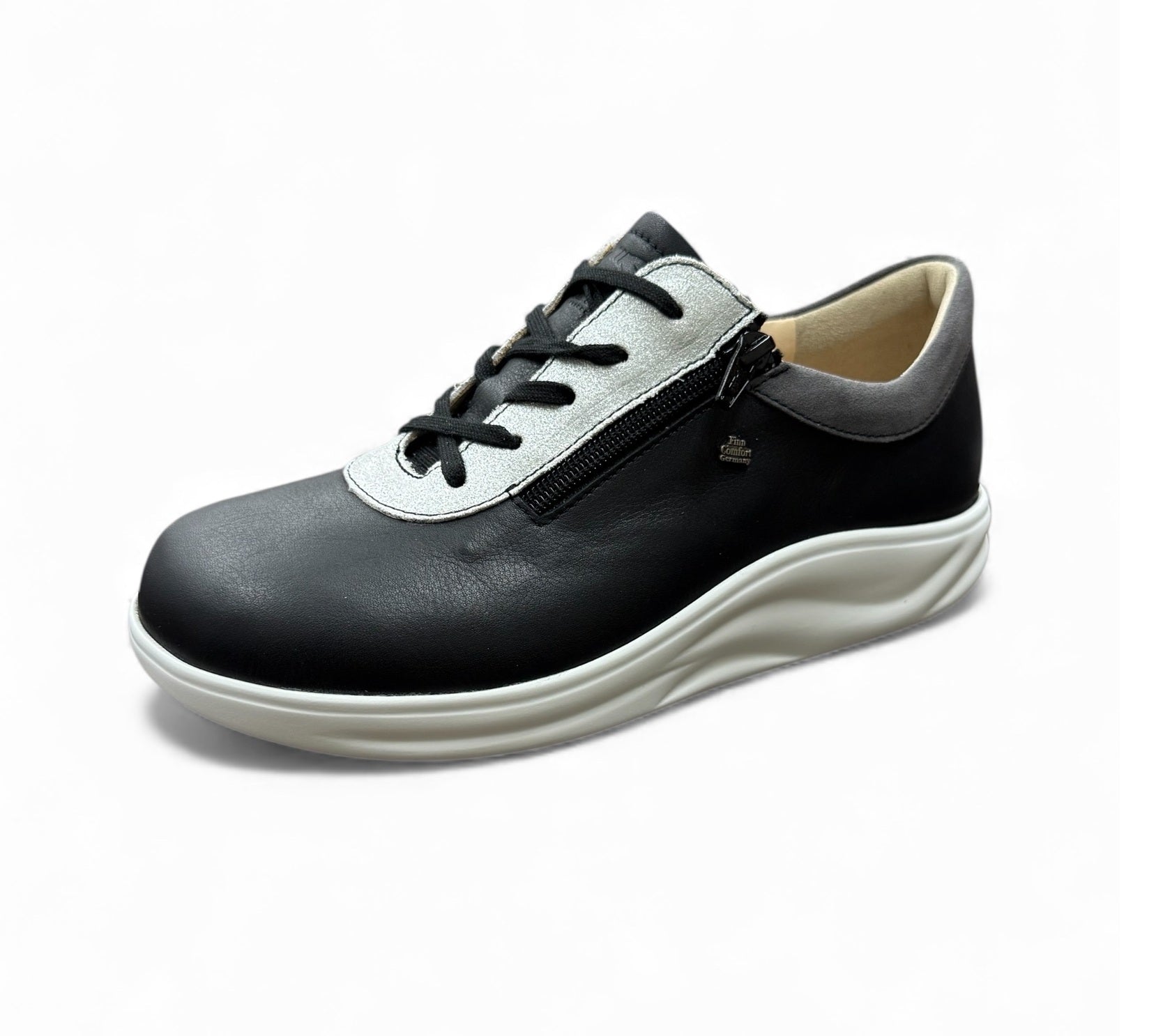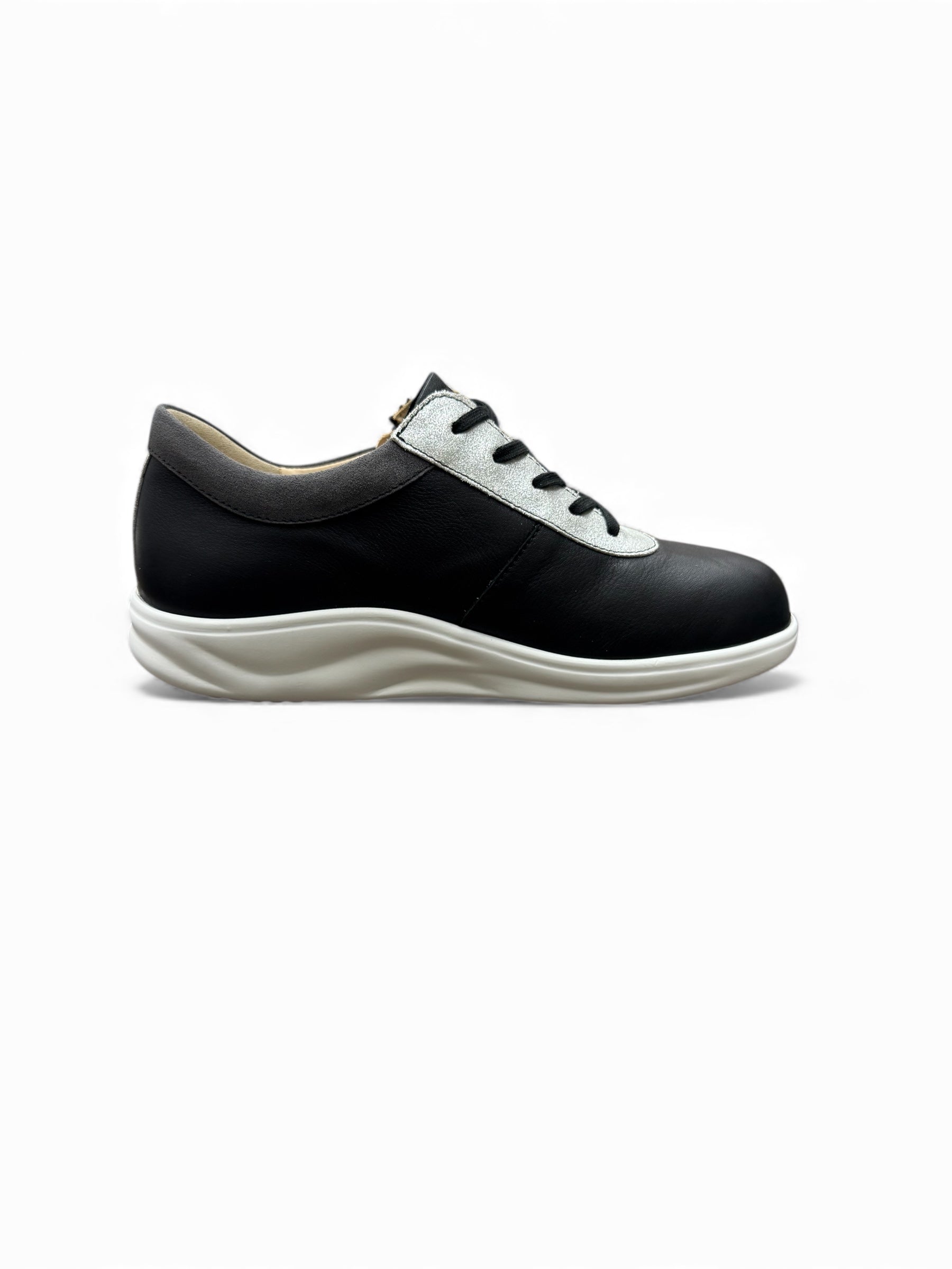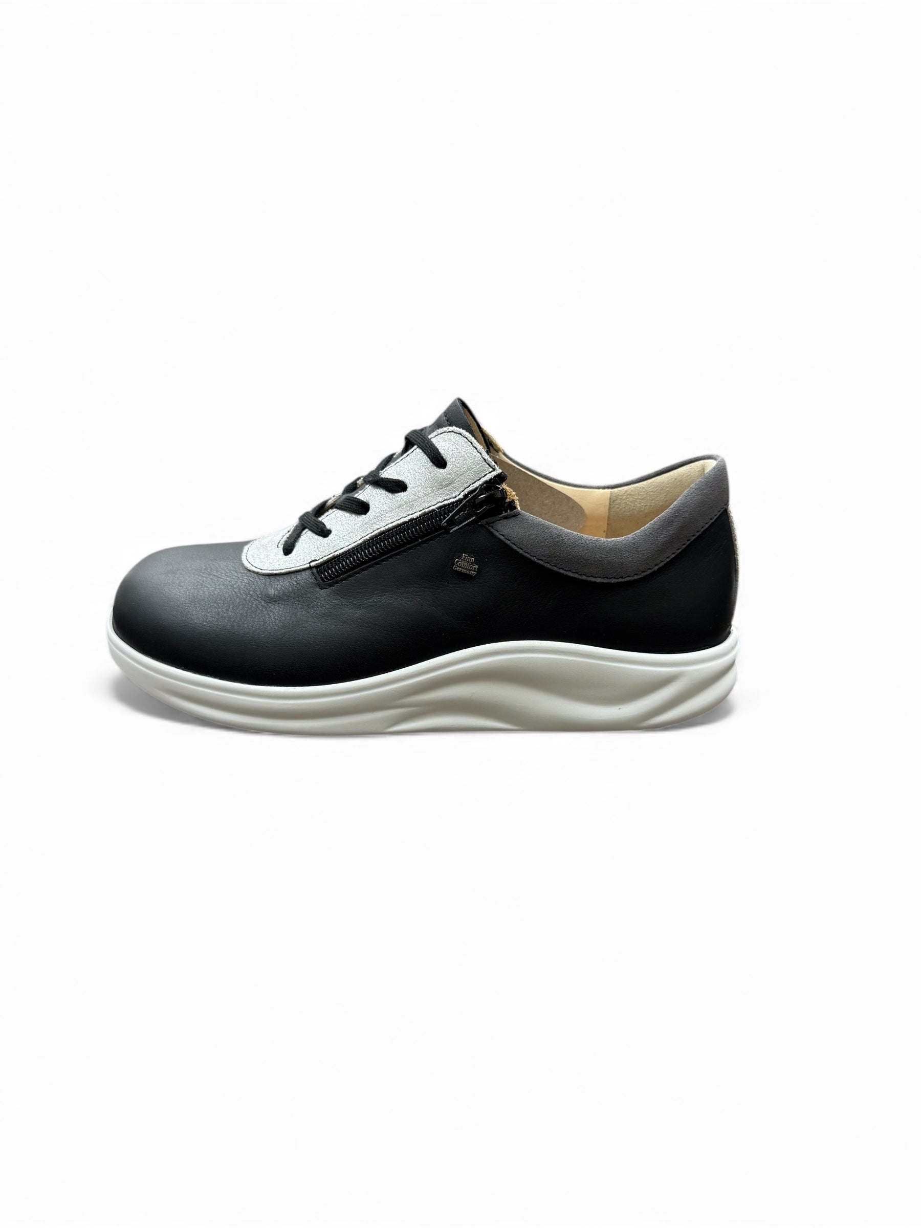 ファスナータイプのレザースニーカーです。ローリングソールの幅は広く作られています。