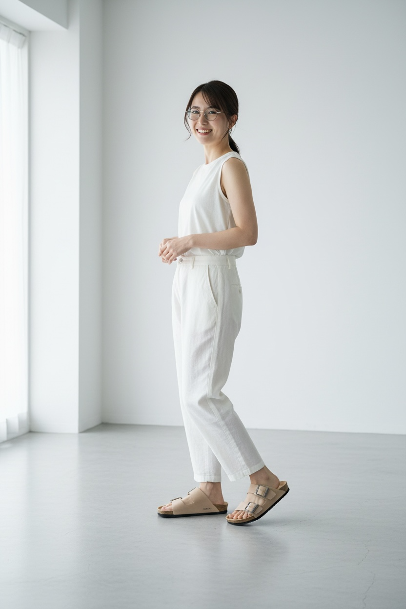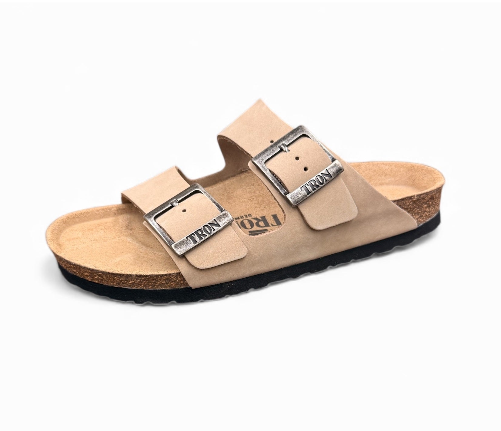 天然ゴムと混合コルクのフットベッドのサンダルです。足のアーチを矯正し、ヒールカップでヒールを支えています。約40年ぶりに復活したシリーズです。軽いので歩きやすく、旅先の室内履きとしてもおすすめです。