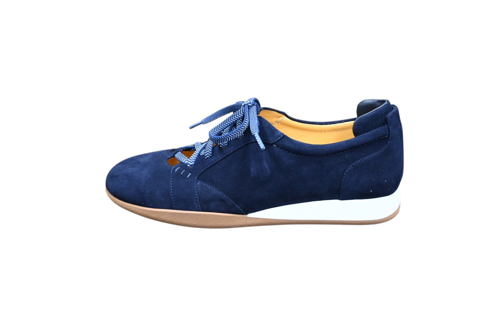 とても軽いレースシューズアップです。ミッドソールがクッションいて、履けるような履き心地です。紐がゴムになっていますので、そのまま脱ぎ履きすることができます。足にぴったりフィットしますので、細目の木型で作られているので、足幅が細い方におすすめです。