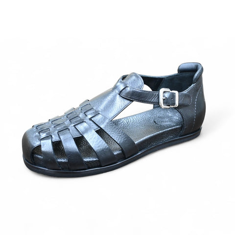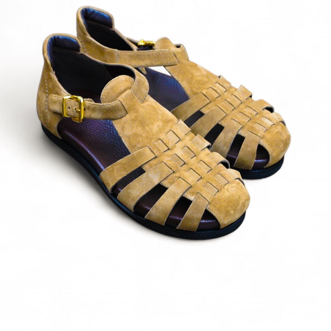 やわらかで質の高いレザーで作られた、グルカサンダルです。足裏に沿ったフットベットになっているのでとても気持ちがいいです。バックルにはゴムが付いているのでそのまま履くこともできます。