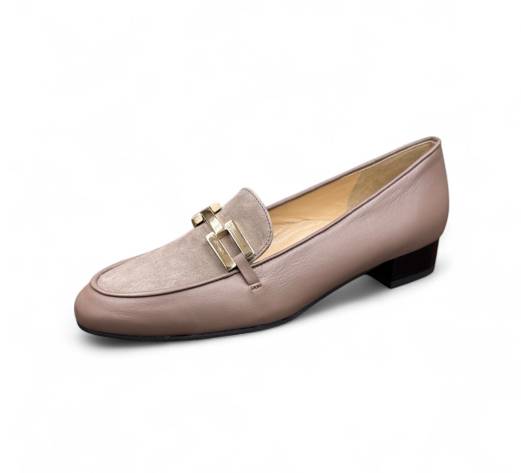 ヒール高2.5cm、カーフレザー使用、デザイン性のあるブロックヒールで歩きやすい